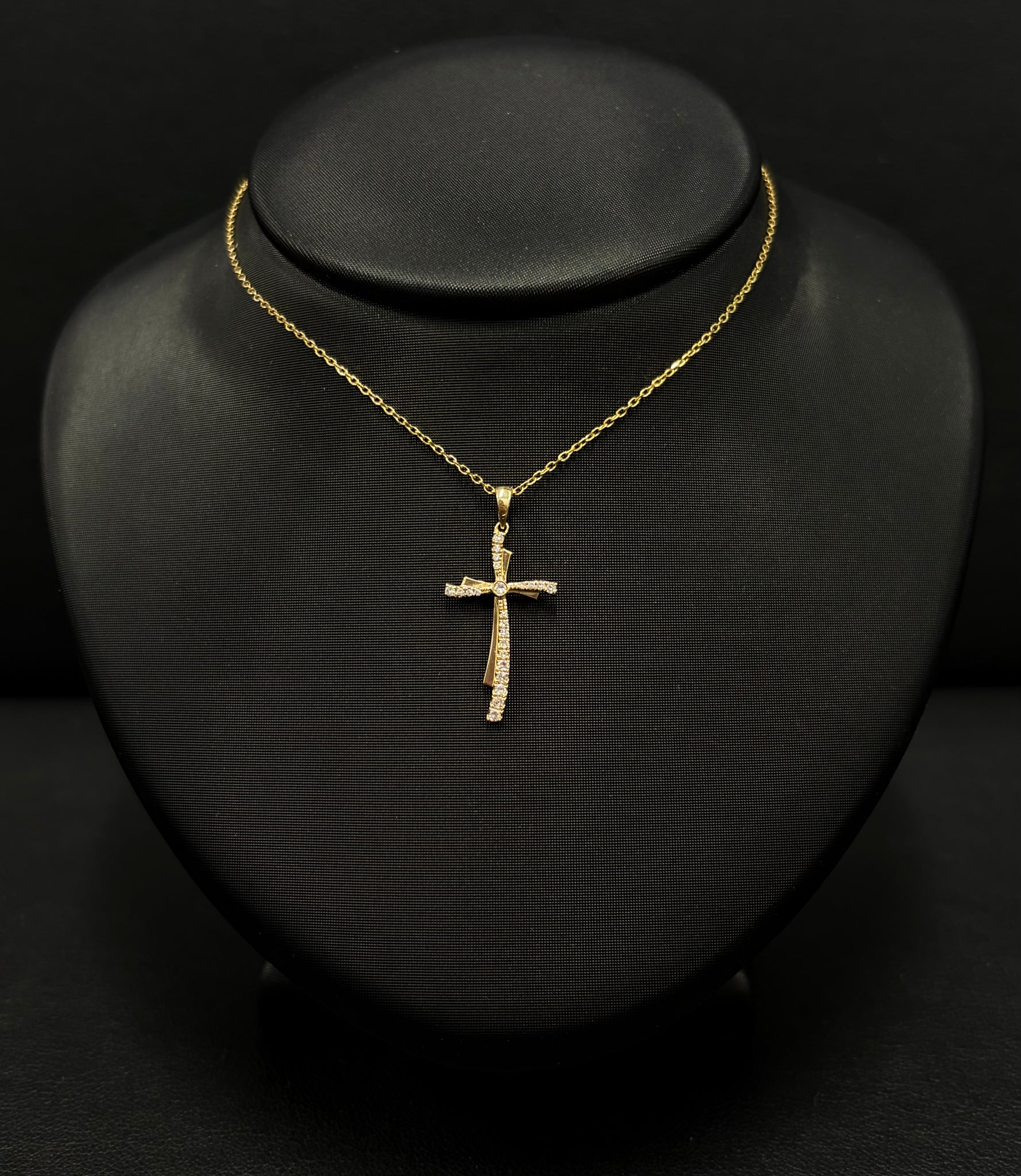 One Ladies 14k Yellow Gold Diamond Double Row Cross on a 16-18" Chain. 23 Round Diamonds have a total weight of 0.11 cts.