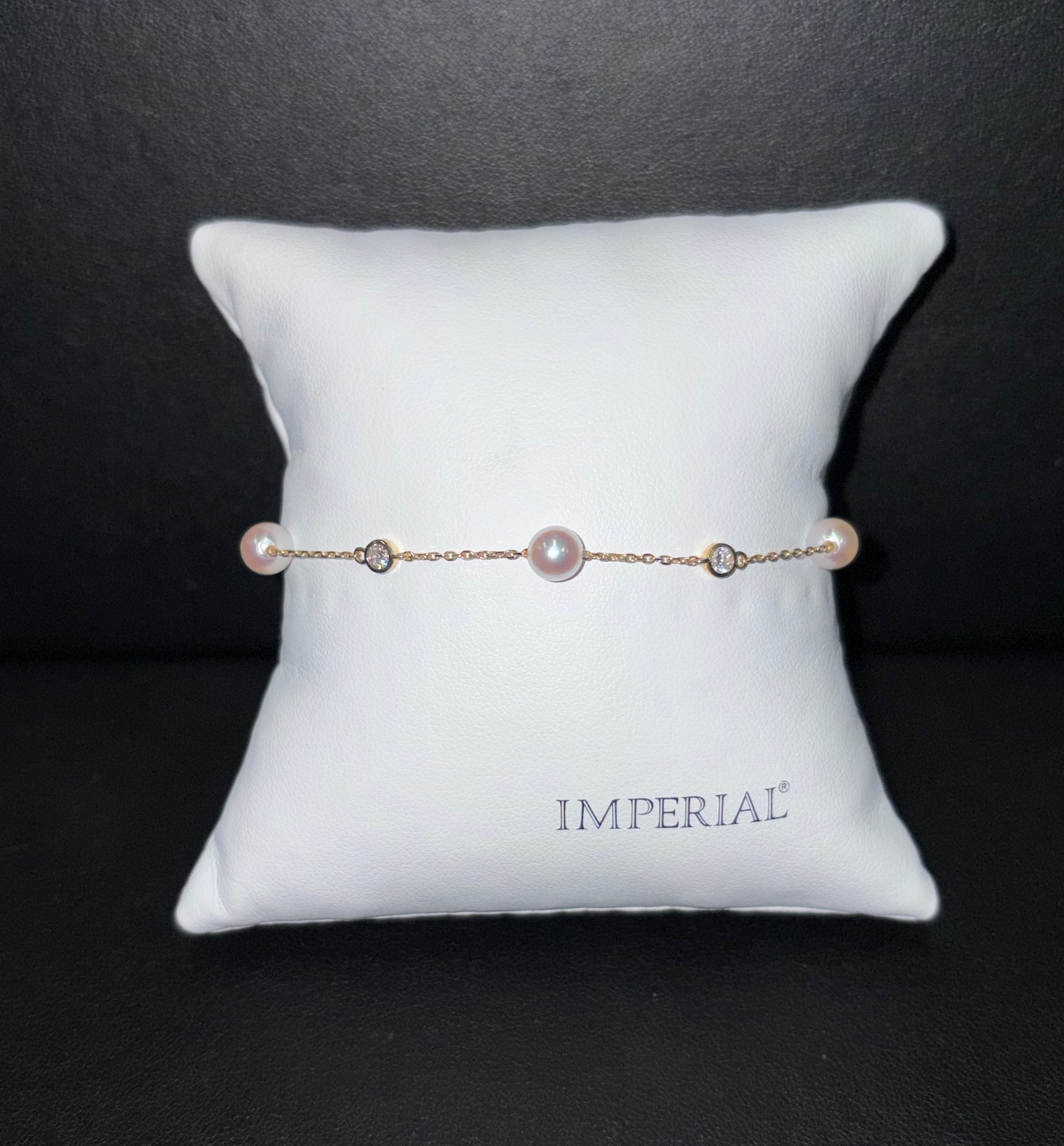 14k Yellow Gold Akoya Cultured Pearl and Diamond Bracelet