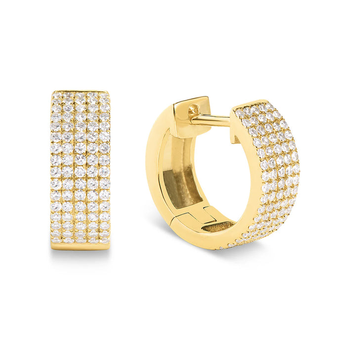 • 14k Yellow Gold Diamond Pave Five Row Huggy Earrings