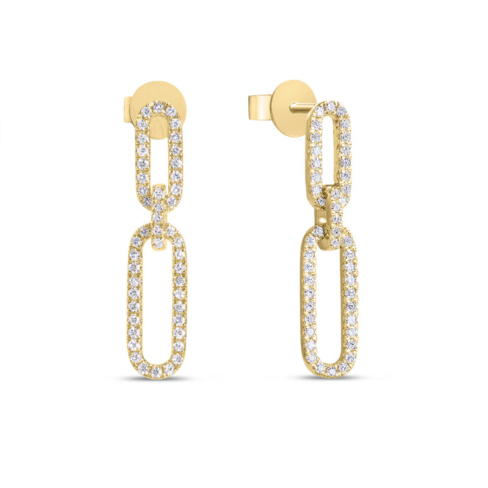 • 14k Yellow Gold Diamond Paperclip Dangle Earrings