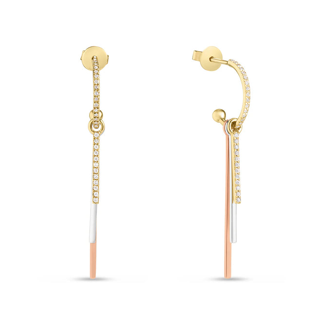 • 14k Tri-Color Gold Three Bar Layered Earrings