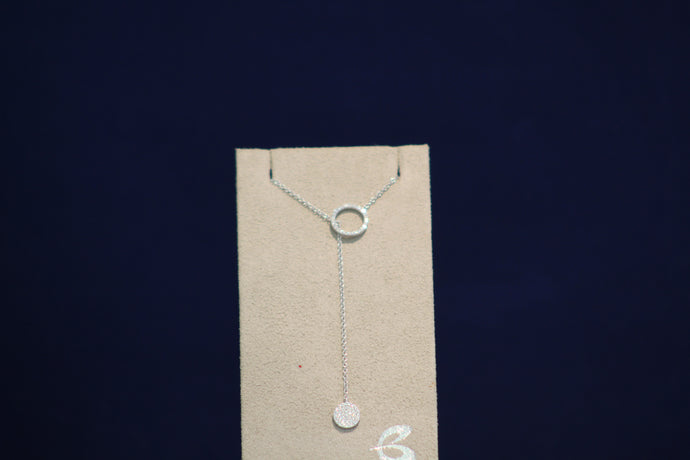 14k White Gold 5 Diamond Bezel Set Fancy Drop Necklace