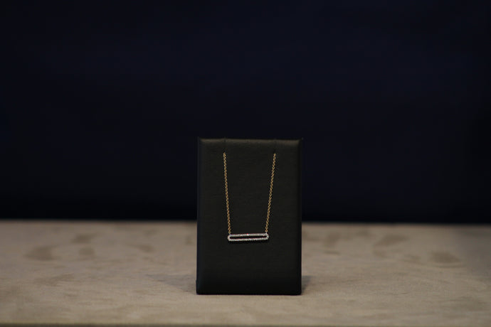 14k Yellow and White Gold Diamond Rectangle Necklace