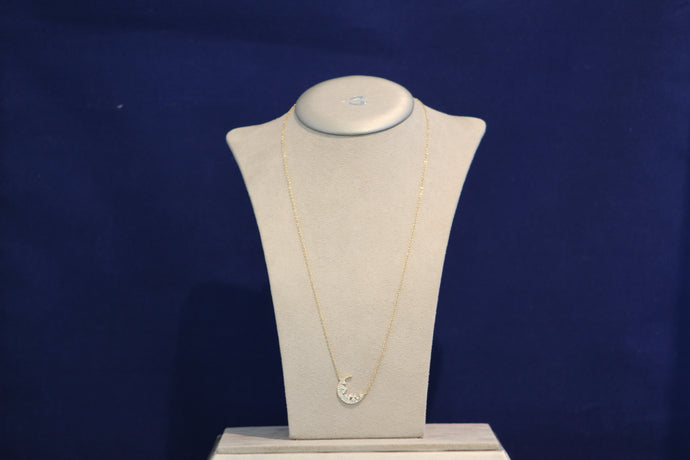 14k Yellow Gold Diamond Fancy Crescent Moon Necklace