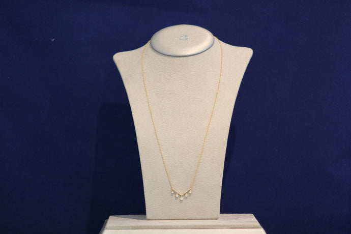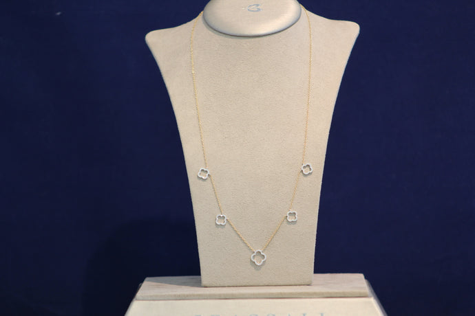 14k Yellow Gold Necklace with Five White Gold Diamond Cloverlike Stations