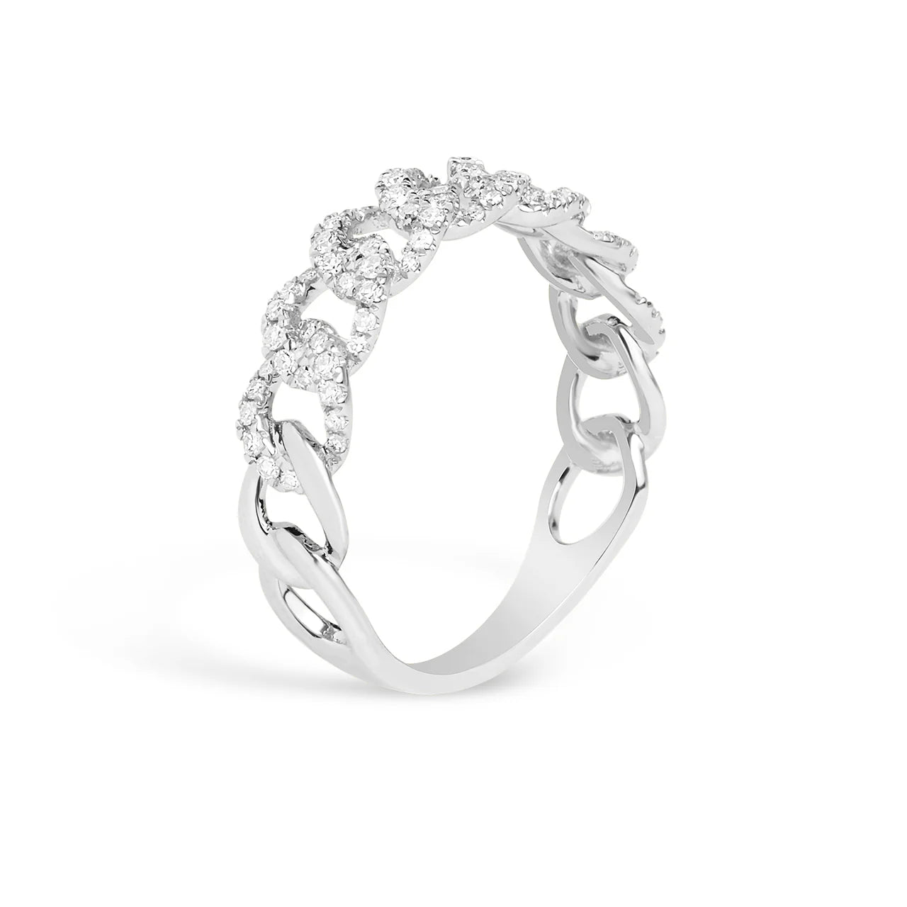 One Ladies Dilamani 14k White Gold Diamond Pave Link Ring. 84 Round Diamonds have a total weight of 0.32 cts.
