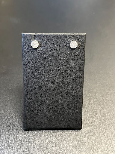 One Pair of Ladies Dilamani 14k White Gold Diamond Disc Stud Earrings. 40 Round Diamonds have a total weight of 0.08 cts. Earrings are 4.8 mm wide.