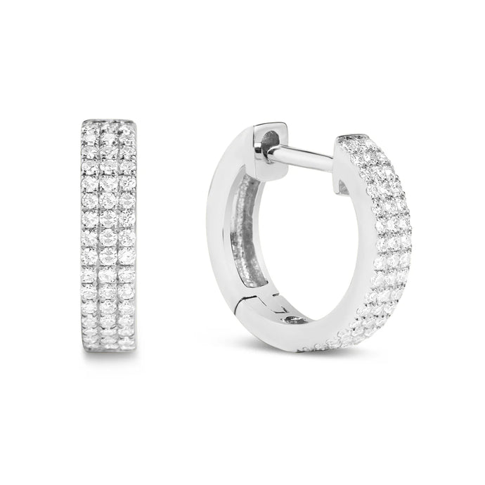 14k White Gold Diamond Pave Three Row Huggy Earrings