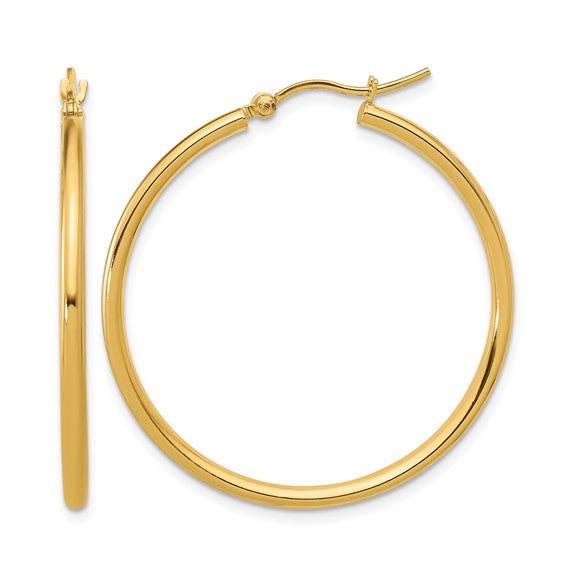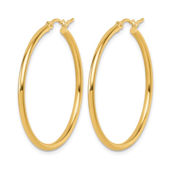 One Pair of 14k Yellow Gold Polished Hoop Earrings. Hoops are 2mm thick and 35mm wide.