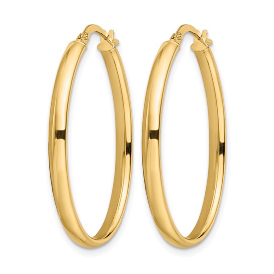 One Pair of 14k Yellow Gold Polished Oval Hoop Earrings. Hoops are 3mm thick and 23x34mm.